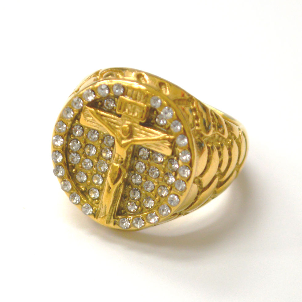 Crucifix Cross Crystal Gold IP Plated Ring 81-1870G